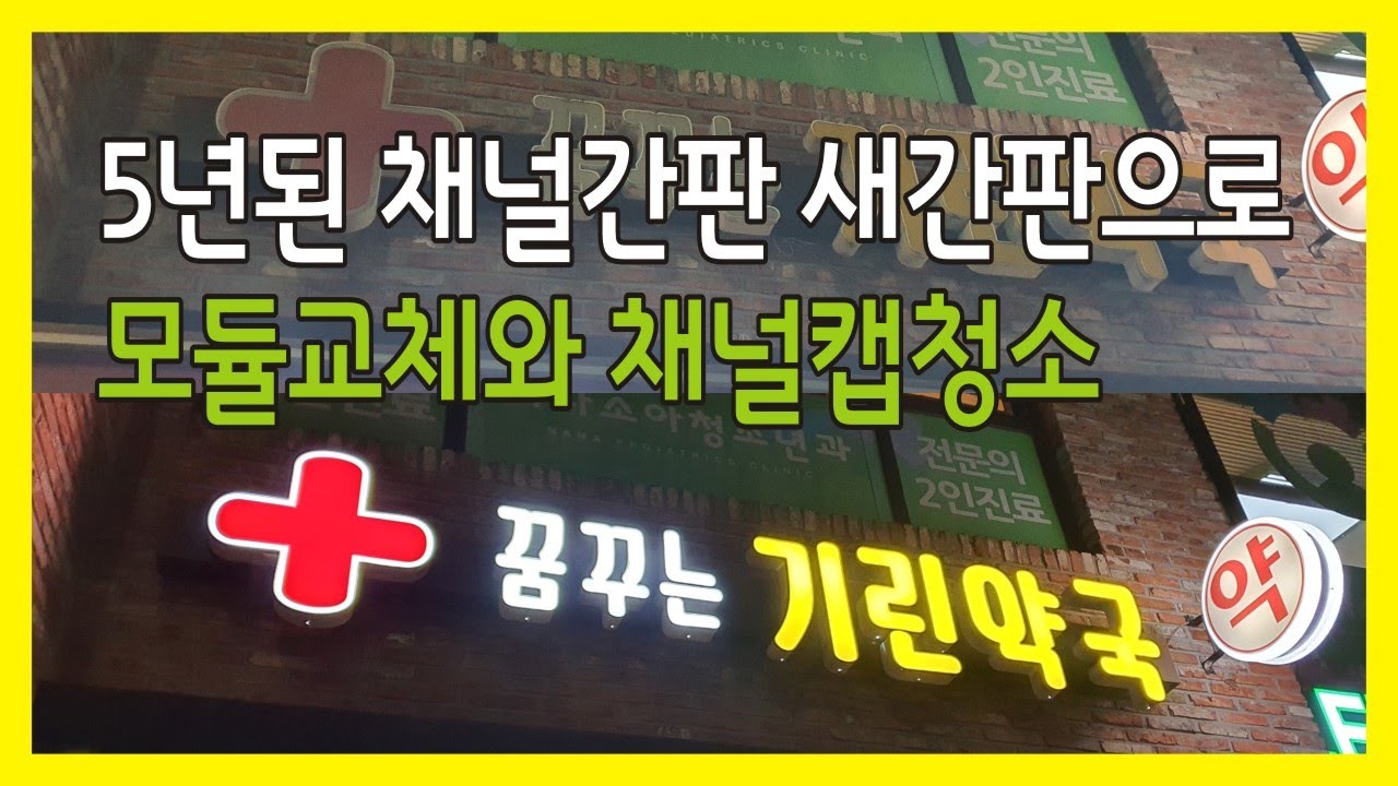 메인 LED 간판인데 LED가 부분적으로 작동이 안되고 간판도 아주 더러운 상태입니다. 이런 경우 LED를 부분적으로 교체하게 되면 해당 부품에 동일한 LED를 사용해도 새로 교체한 부품이 더 밝게 나와서 보기에 좋지 않을 수 있습니다. 전체적으로 두번의 작업을 하지 않고도 간판 청소와 LED 교체가 가능합니다.