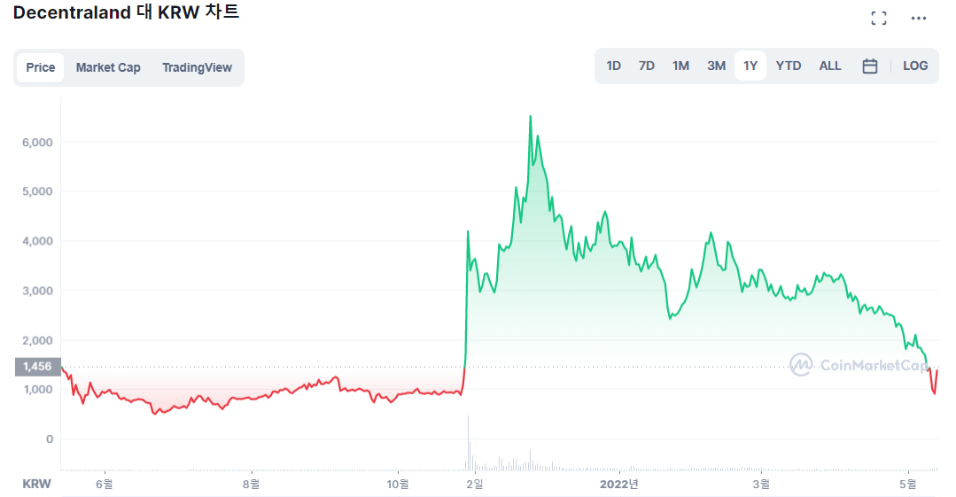 Decentraland Coin은 현재 상위 10개 보유자의 42%를 보유하고 있습니다. 다른 통화에 비해 잘 분산되어 있습니다. 페이스북도 메타버스 기업이 되기 위해 사명을 META로 바꾸고 가장 큰 수혜를 입었다. 착용한 화폐는 디센트럴 랜드라 트위터에 게시되어 있으며, 총 공급량은 약 20억, 토큰의 시가는 6조 4,000억 원, 현재 유통량은 15억입니다.
