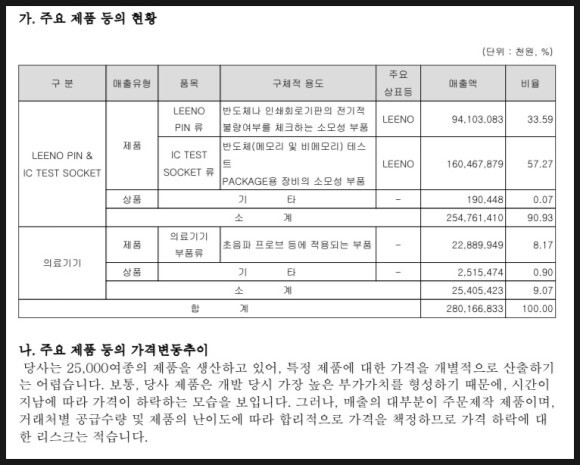출처 : 리노산업 홈페이지, 주요 제품 현황