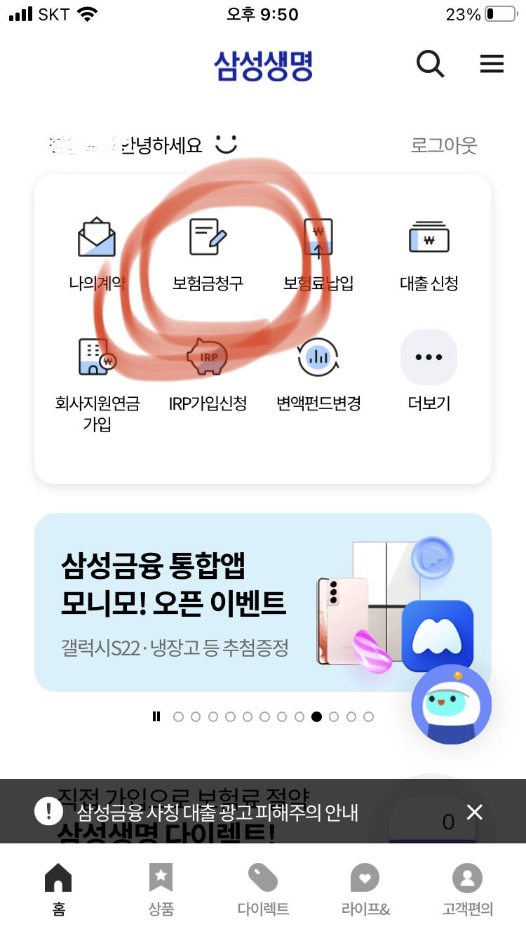 모니모 삼성생명 실비보험 청구