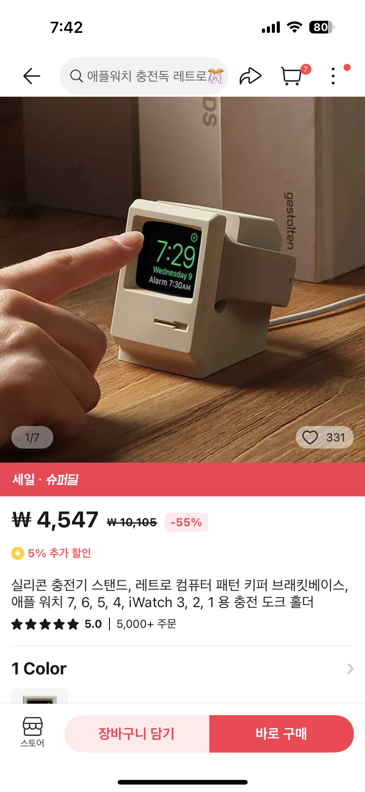 Apple Watch 충전기를 충전할 때마다 줄을 올려야 하는 불편함이 있습니다. 스탠드형 충전기 살까 고민하다가 알리에서 맘에 드는 실리콘 스탠드를 보고 주문했어요.