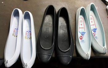 아이들은 신발에 빨대를 넣습니다.