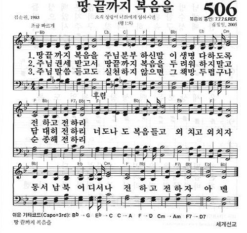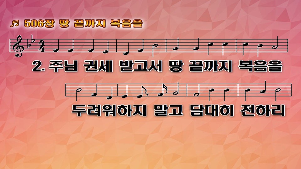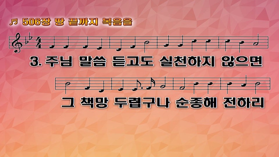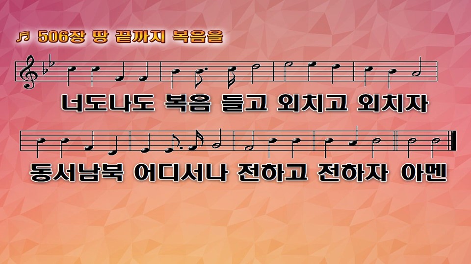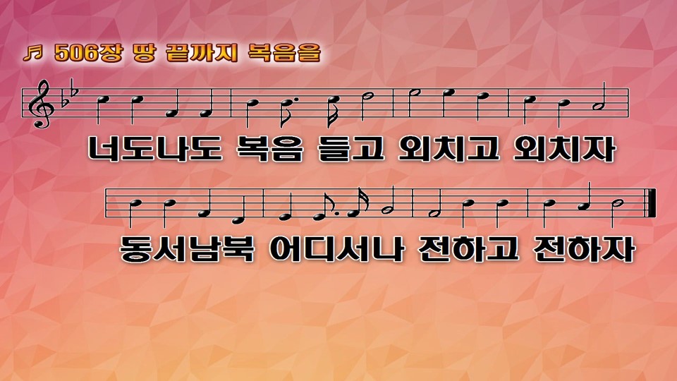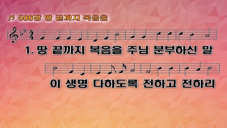 (찬송가 506장 PPT WIDE) 땅 끝까지 복음 / 가사와 악보 포함 16:9