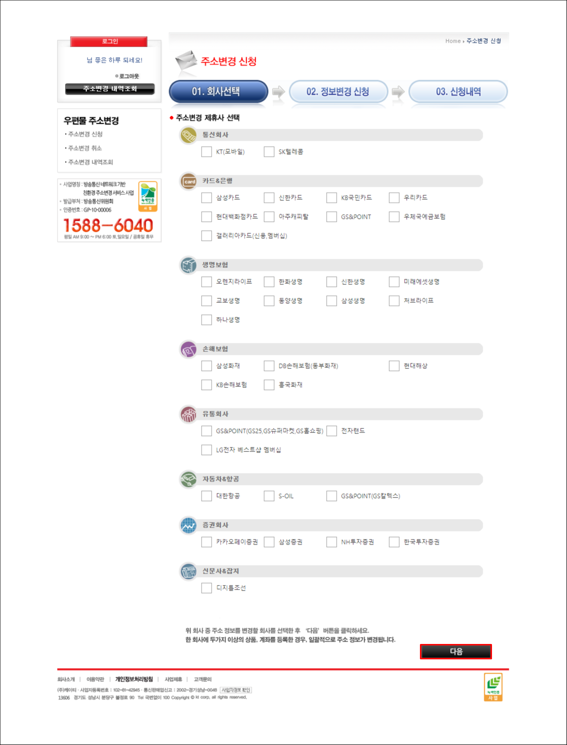 이제 이사할 곳의 우편번호를 입력하고 주소 세부정보를 입력할 수 있습니다.