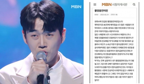 MBN ‘불타는 트롯맨’에 출연 중인 황영웅을 둘러싼 효행 논란이 이어지고 있다.
