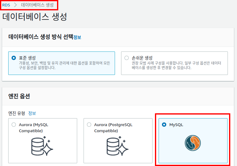 2. MySQL용 AWS RDS 구축