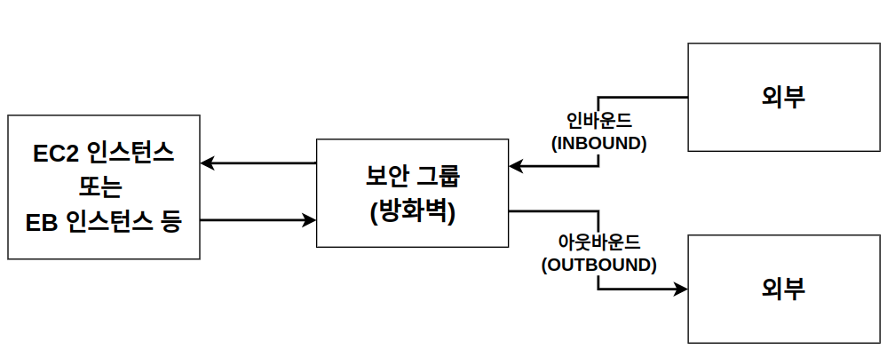 - 인바운드: 외부에서 EC2 인스턴스 또는 EB 인스턴스로 요청을 보내는 트래픽(HTTP, HTTPS, SSH ..)