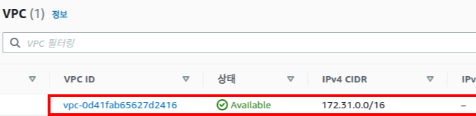 Amazon Virtual Private Cloud(VPC)는 AWS 클라우드에서 논리적으로 격리된 영역입니다. VPC를 사용하면 고객 정의 가상 네트워크에서 AWS 리소스를 시작할 수 있습니다. 아래와 같이 ElasticBeanstalk 인스턴스 또는 RDS를 생성하면 기본 VPC가 자동으로 할당됩니다. 할당은 지역마다 다릅니다.